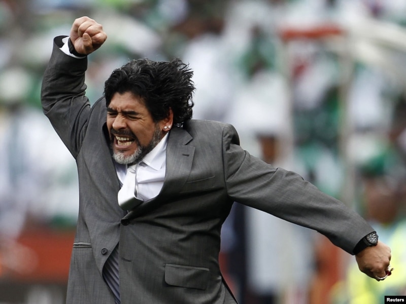 Argentinanyň futbol komandasynyň tälimçisi Diego Maradona, 12-nji iýun, 2010-njy ýyl.