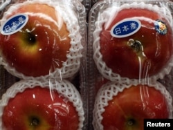 Hong Kongdaky ýapon söwda merkezinde Ýaponiýadan getirilen almalar, 20-nji mart.