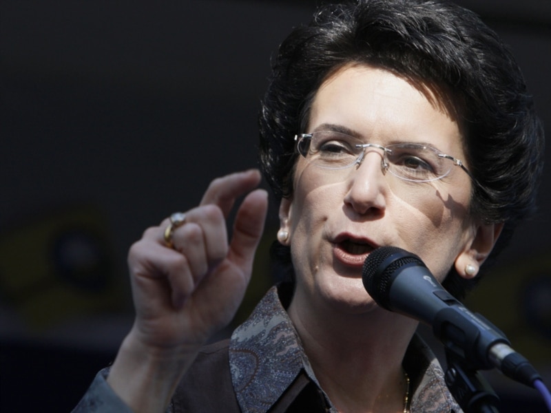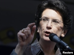 Gürjüstanyň oppozisiýa liderleriniň biri Nino Burjanadze Tbiliside geçirilýän protestler mahalynda, 24-nji maý.
