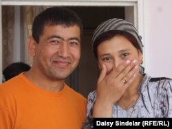 Sabyr Umurzanow (çepde) öz gelni Dilfuza Haşimowa bilen, Oş, 9-njy iýun.
