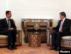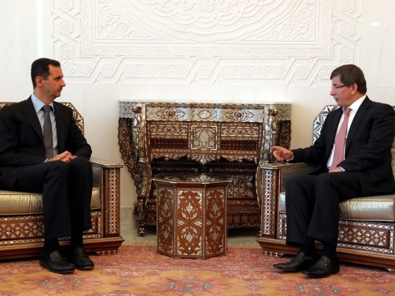 Türkiýäniň daşary işler ministri Ahmet Dawutoglu (sagda) Siriýanyň prezidenti Başar al-Assad bilen duşuşýar, Damask, 9-njy awgust.