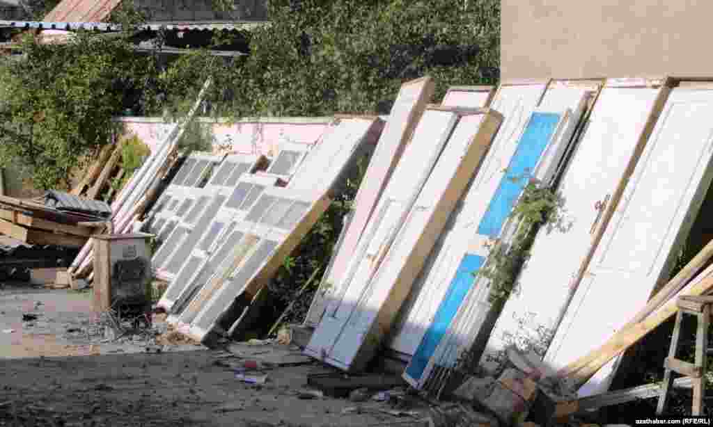 Ýaşaýyş jaýlary ýumrulýan raýonlarda sökülen jaýlaryň howlularynda şol jaýlardan galan kerpiçleriň, plitalaryň, gapylaryň, penjireleriň we beýleki gurluşyk materiallarynyň örülip goýlandygyny görmek bolýar. Olar satylýar.