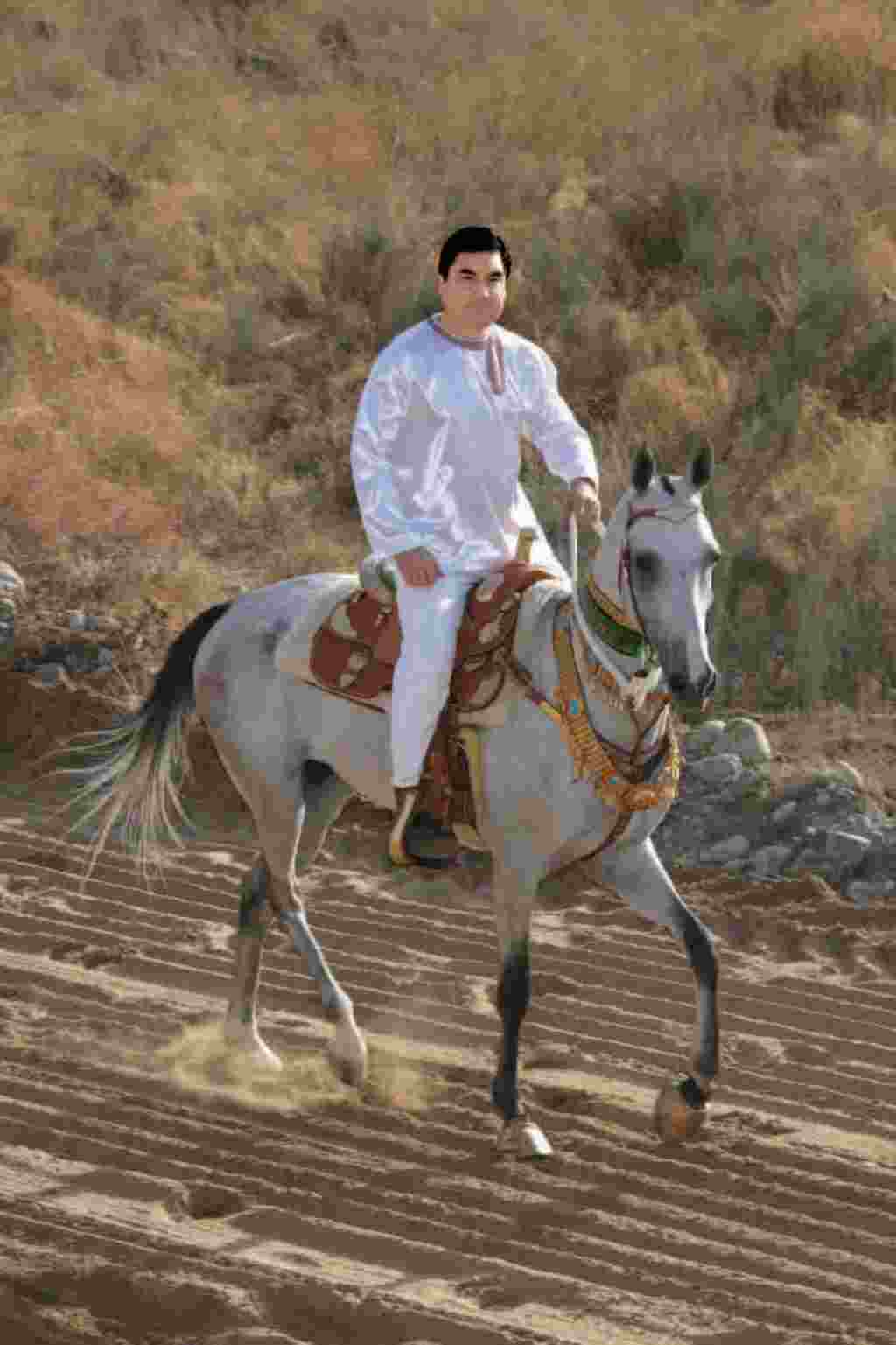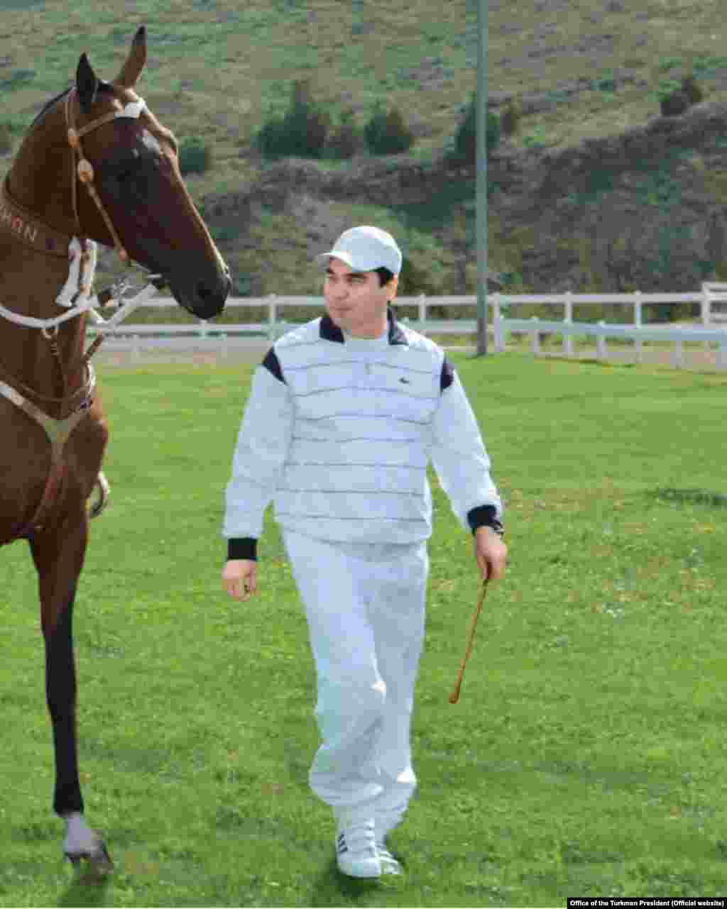 Aşaky fotosergide prezident Gurbanguly Berdimuhamedowyň türkmen bedewi bilen düşen suratlarynyň käbirleri ýerleşdirildi.