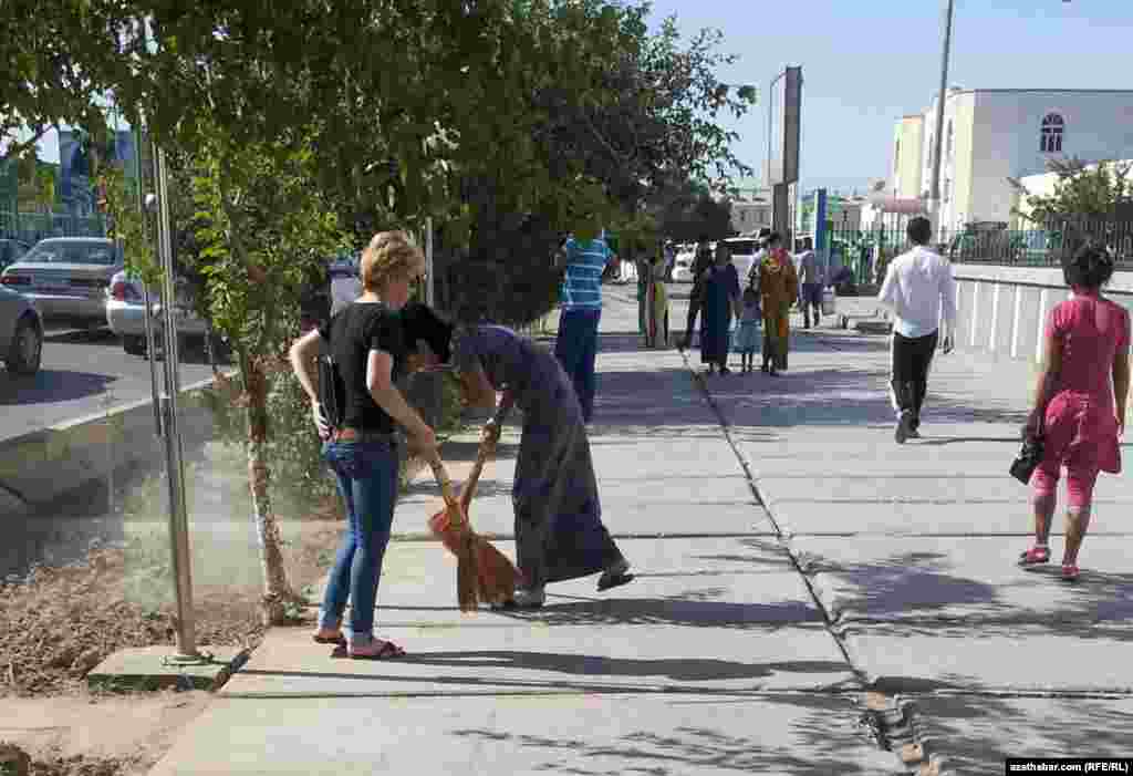 Soňky günler her hepdäniň şenbe we ýekşenbe günleri Türkmenabat şäherinde ýanýodalary, edaralaryň daş töweregini arassalap ýören adamlara duş gelse bolýar.