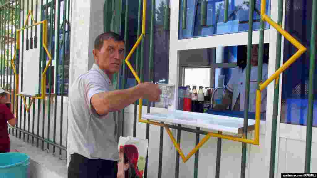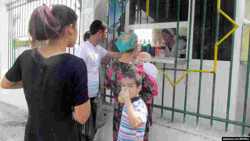 Soňky hepdelerde Türkmenistanda howanyň gyzmagy netijesinde paýtagtlylar ýoluň gyralaryndaky suw satýan dükanlardan suw satyn alyp öz suwsuzlygyny gandyrýarlar. Aşakdaky fotosergide Aşgabadyň käbir sebitlerinde dükanlardan suw satyn alyp duran ýaşaýjylary görse bolýar.