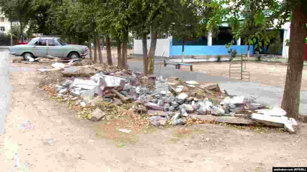 Aşgabat şäheriniň 10-njy etrapçasynda ýerleşýän 76-njy çagalar bagynyň haýatlarynyň sökülenine dokuz aý çemesi wagt bolandygy habar berilýär. Emma muňa garamazdan, bu ýerden sökülen haýatlaryň gurluşyk galyndylarynyň, şol sanda somalyp duran armaturalaryň heniz hem arassalanmandygyny görse bolýar. Bu bolsa, bu çagalar bagyna gatnaýan çagalar üçin howply ýagdaýy döredýär.