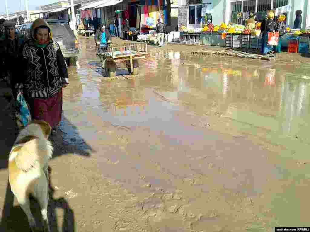 Bazaryň tas ähli köçelerinde diýen ýaly batgalyk döredi.
